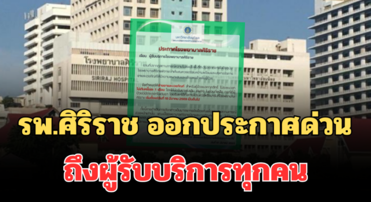 รพ.ศิริราช ออกประกาศด่วน ถึงผู้รับบริการทุกคน