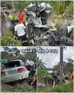 สลด! รถเสียหลักชนเสาไฟ ดับ 4 ศพ คาดคนขับหลับในตำรวจทางหลวงบางสะพาน ตรวจสอบอุบัติเหตุรถยนต์อเนกประสงค์เสียหลักลงข้างทาง ก่อนพุ่งชนเสาไฟฟ้าแรงสูง บนถนนเพชรเกษมขาเข้ากรุงเทพฯ พื้นที่ อ.ทับสะแก จ.ประจวบคีรีขันธ์